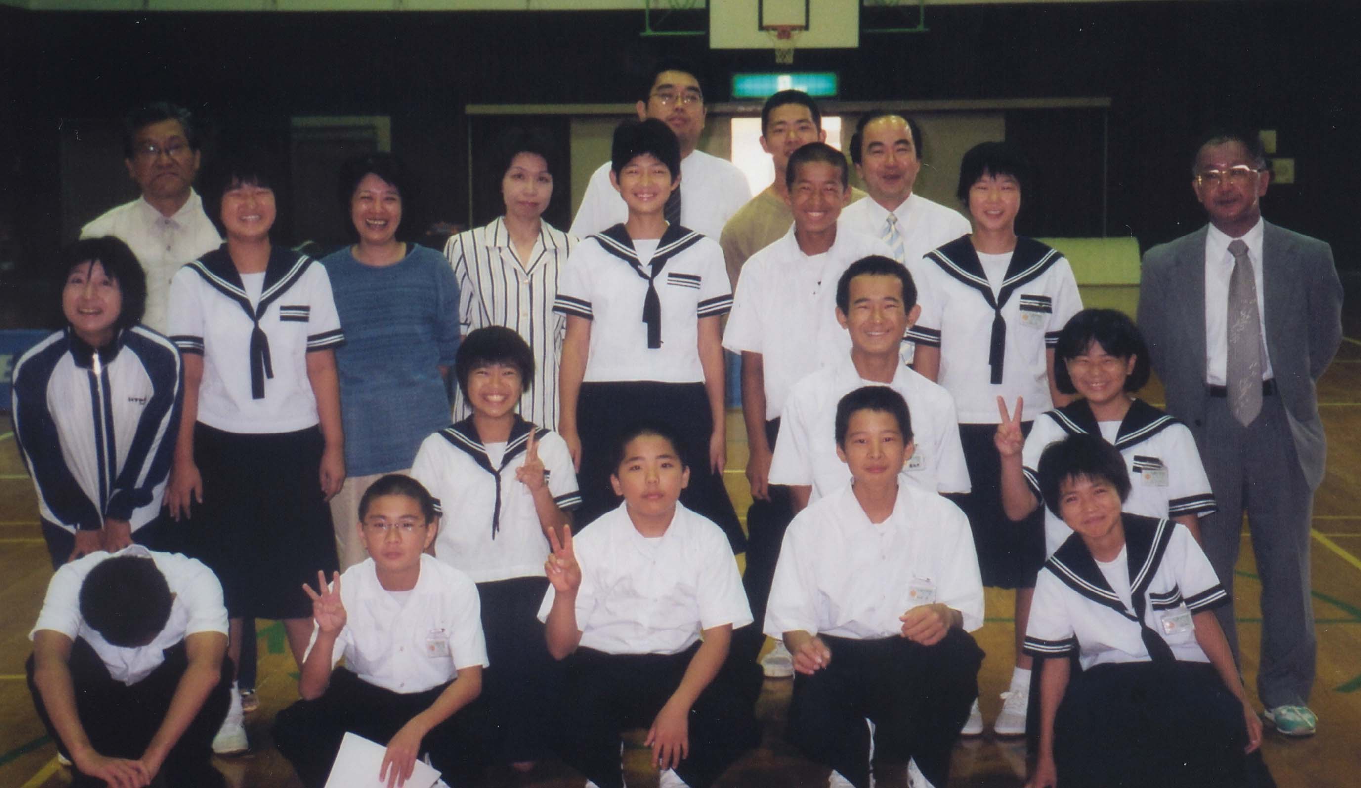 Elementary Schools Below are pictures of my elementary schools students. They all rock and are incredibly cute. They have an infinite number of questions for me (what's your blood type...?) and they all send me letters after I've visited them. Once they had a fight over who got to play with me at Lunchtime. From right to left we have Togi Shogakko, Midori Shogakko and Fukue Shogakko.